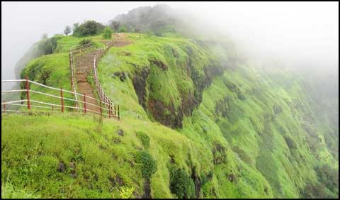 Sprawling languidly at an altitude of 800 metres is Matheran - an undulating hilltop cloaked in green. The cliffs of Matheran with incredibly steep drops to the plains below offer stunning viewing points. These panoramic vistas, by day and night, leave you feeling light headed. Standing at Hart Point in pitch darkness you get a breathtaking glimpse of the lights of busy Bombay. Matheran abounds in such quixotically named points. popular sites for picnics and fireside revelry. The old world charm of the British and Parsi home capitavtes you all the way up to the Charlotte Lake. On each trip through the main bazaar you purchase some of its attractions - care and leather articles, hats, chappals and the irresistible chikki loved by young and old alike. Temperatures vary from 16° C in winter to 32° C in summer with an annual rainfall of 524 cms. It is a place to visit round the year, monsoons included, for the young at heart. Matheran hill station is one of the only few places in the world where all vehicles are banned which makes the place unique. Matheran takes you over a hundred years back in time when there were no cars. The unpolluted air, beautiful surroundings, charming shady walks and magnificent panoramic views are what make a stay in Matheran a totally different experience in itself. So visit Matheran to sit back and enjoy nature and the healthy atmosphere. |